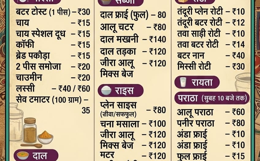 A cozy dhaba atmosphere welcoming all ages and temple visitors.
